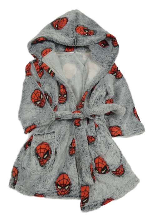 Šedý chlupatý župan se Spidermanem a kapucí M&S