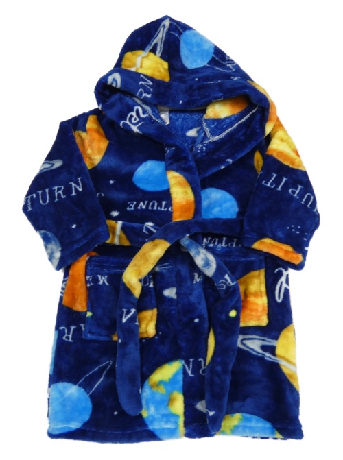 Tmavomodrý chlupatý župan s vesmírem a kapucí