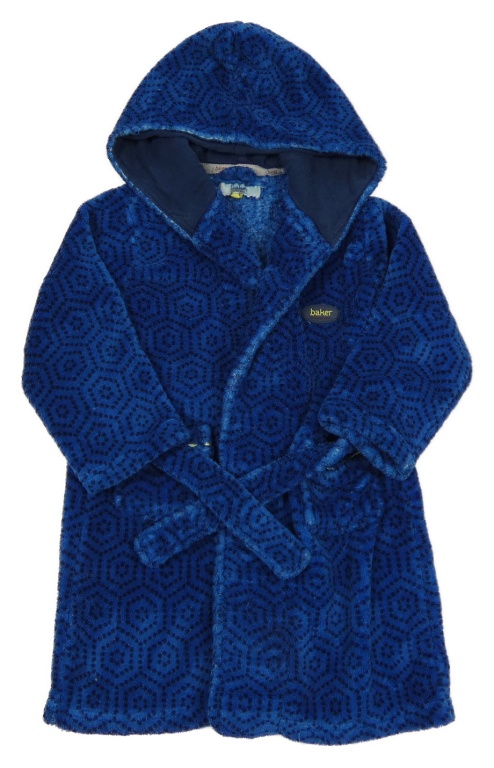 Cobaltově modro-tmavomodrý vzorovaný plyšový župan s kapucí TED BAKER