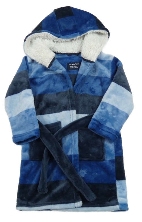 Modro-tmavomodro-světlemodrý pruhovaný plyšový župan s kapucí PRIMARK