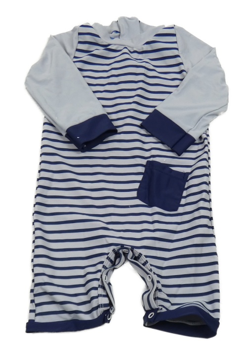 Světlešedo-tmavomodrý pruhovaný UV overal s kapsou
