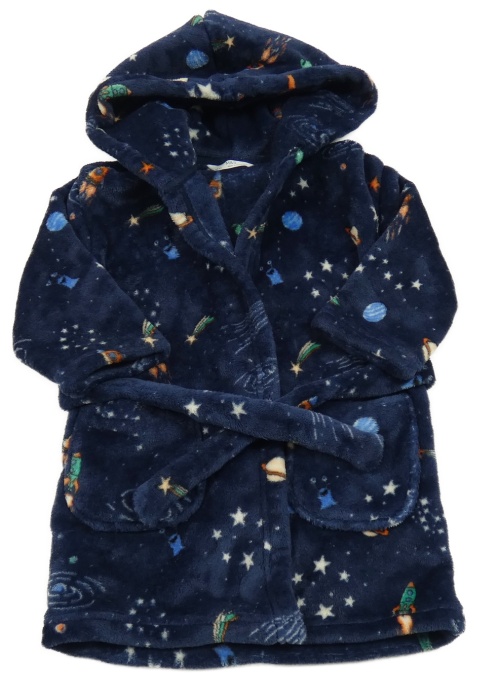 Tmavomodrý plyšový župan s vesmírem a kapucí M&S