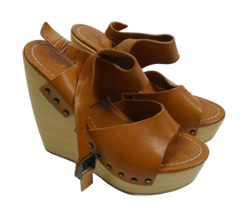 Nové - Dámské skořicové kožené sandály a dřevěném klínku vel. 37