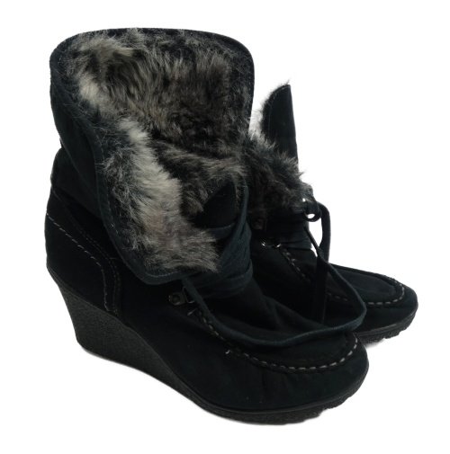 • Nové - Dámské černé semišové šněrovací polokozačky na klínku s kožíškem F&F vel. 37
