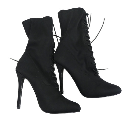 • Dámské černé šněrovací polokozačky na jehlovém podpatku vel. 38