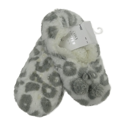 • Nové - Dámské bílo-šedé vzorované kožešinové domácí bačkory Dunnes