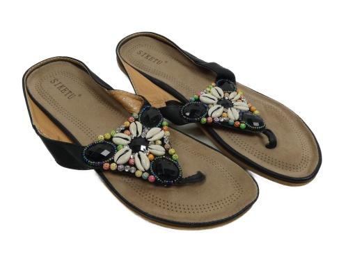 • Dámské černo-béžové kožené žabky s kamínky Siketu vel. 39