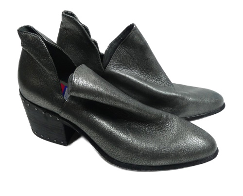 • Dámské stříbrné kožené kotníkové boty na podpatku vel. 40
