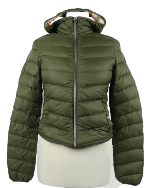 Dámská khaki šusťáková pod/zimní crop péřová bunda s kapucí JBC