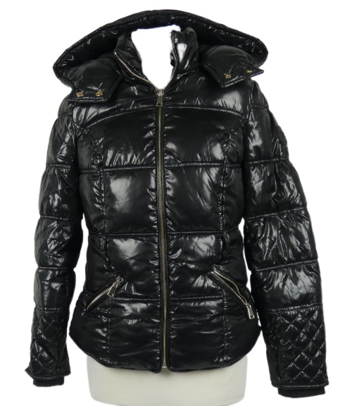 Dámská černá šusťáková lesklá zimní bunda s kapucí River Island