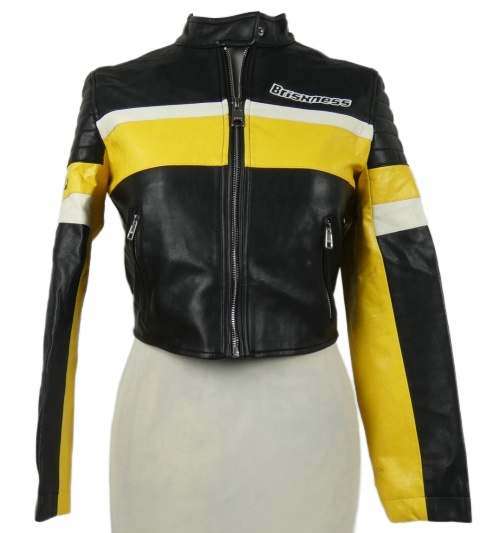 Dámská černo-žlutá crop koženková bunda s pruhy Bershka