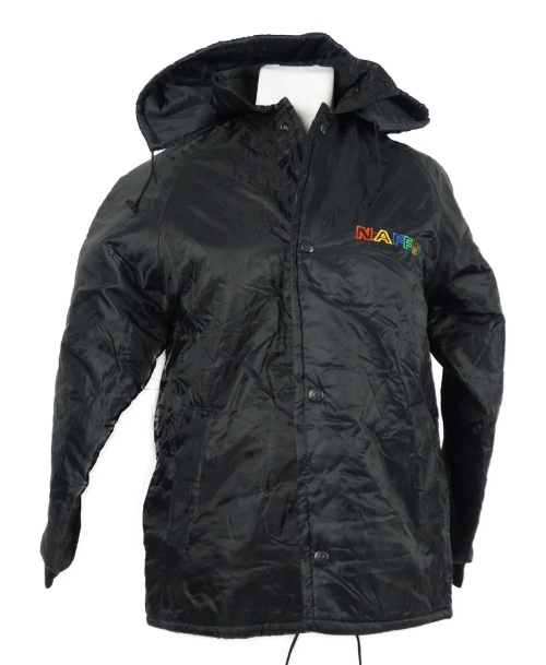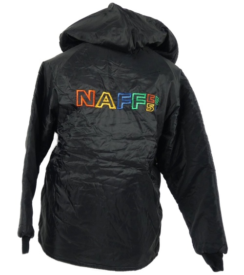 Dámská černá šusťáková zateplená bunda s nápisem a kapucí
