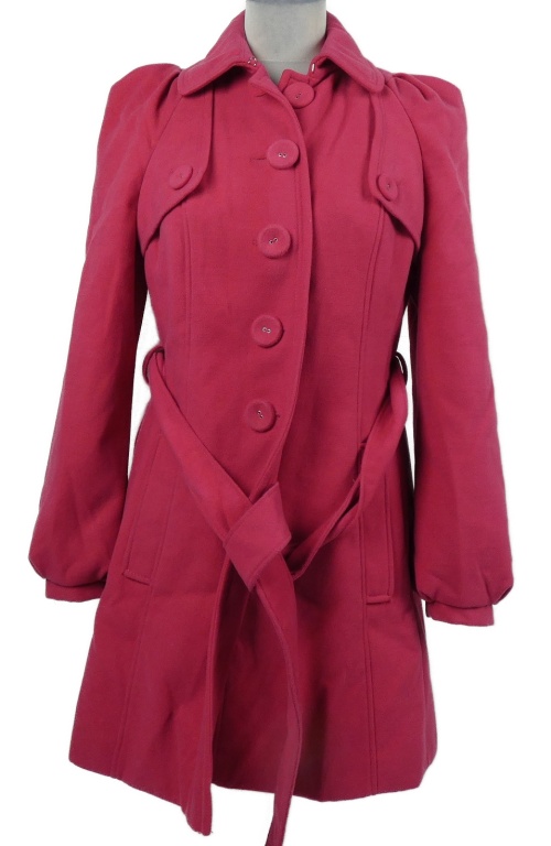 Dámská fuchsiový flaušový kabát s páskem Next