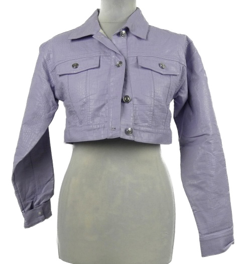 Dámská lila vzorovaná koženková crop bunda PrettyLittle Thing
