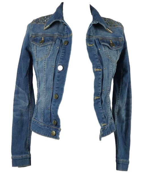 Dámská světlemorá riflová crop bunda s cvočky H&M