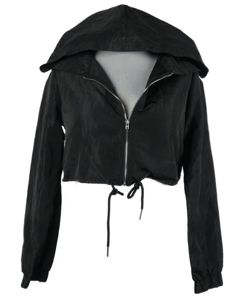 Dámská černá šusťáková crop bunda s kapucí Shein