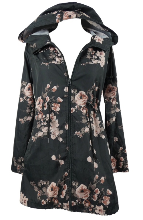 Dámská černá květovaná šusťáková parka s kapucí Colloseum