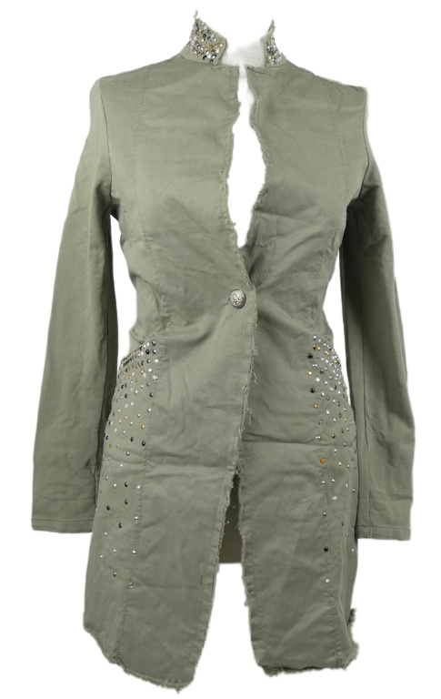Dámský khaki teplákovo/riflový kabát s cvočky