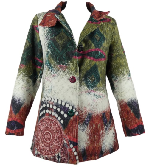 Dámský barevný vzorovaný pod/zimní flaušový kabát