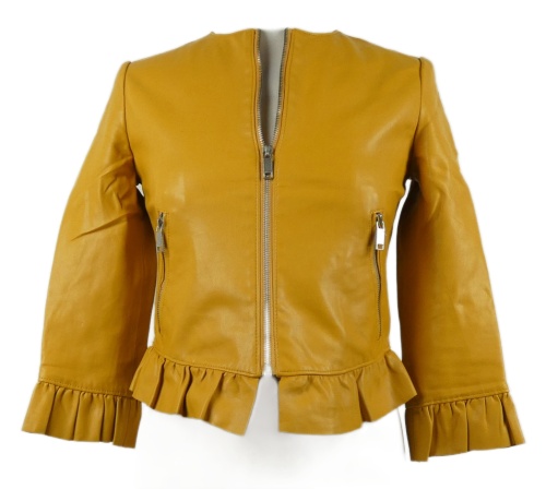 Dámská hořčicová koženková crop bunda s volánkem Zara