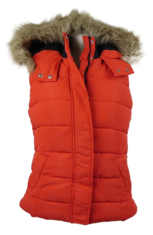 Dámská červená šusťáková zateplená vesta s kapucí F&F