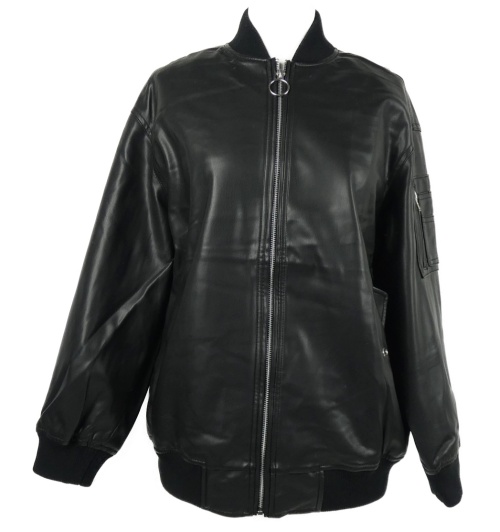 Dámský černý koženkový oversized bomber Bershka