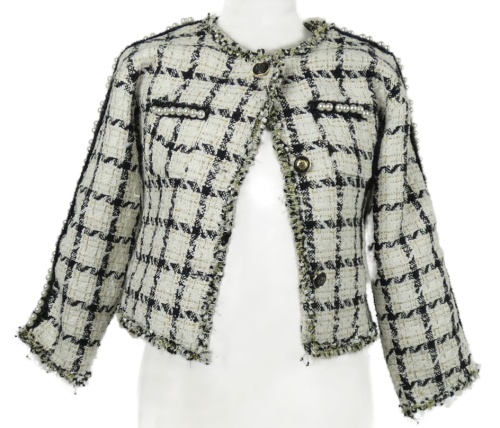 Dámský bílo-černo-zlatý kostkovaný kabátek