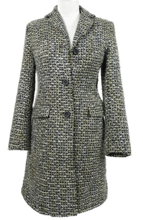 Dámský černo-béžovo-světlemodrý vzorovaný kabát