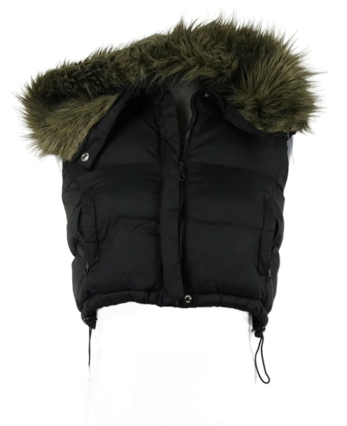 Dámská černá šusťáková zateplená crop vesta s kapucí Denim