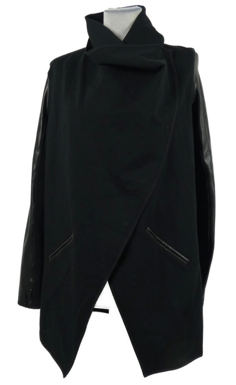 Dámský černý kabát s koženkovými pruhy Spanx