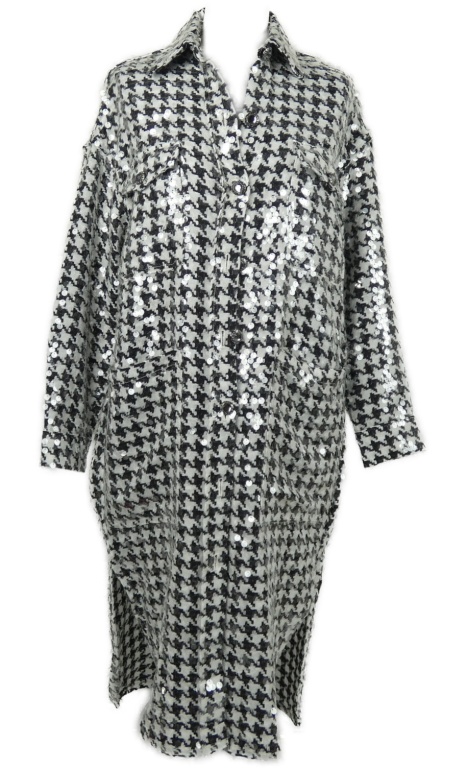 Dámský černo-bílý vzorovaný vzorovaný pletený oversized kabát s flitry Zara