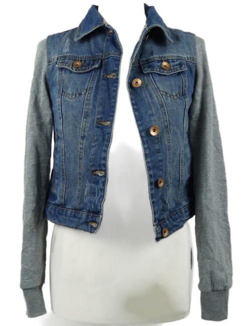 Dámská modro-šedá riflová crop bunda s teplákovými rukávy Fashion Nova