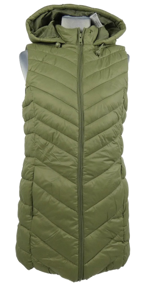 Nové - Dámská světlekhaki šusťáková zateplená maxi vesta s kapucí Primark