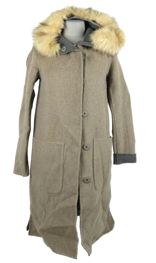 Dámský béžový flaušový kabát s kapucí s odepínacímkožíškem Suite