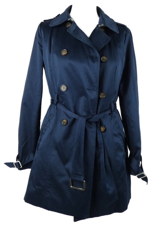Dámský tmavomodrý jarní kabát s páskem Orsay