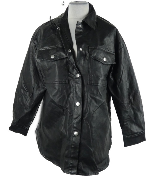 Dámská černá koženková oversize košilová bunda Shein