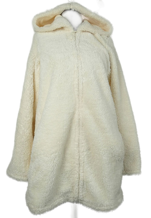 Dámská smetanová huňatá dlouhá bunda s kapucí Janina