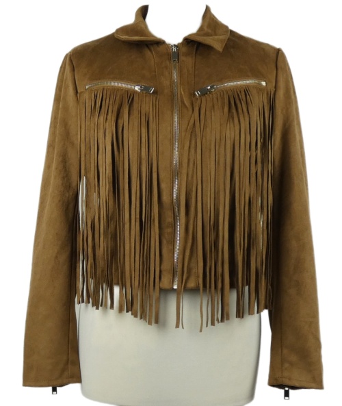 Dámská hnědá semišová crop bunda s třásněmi Only
