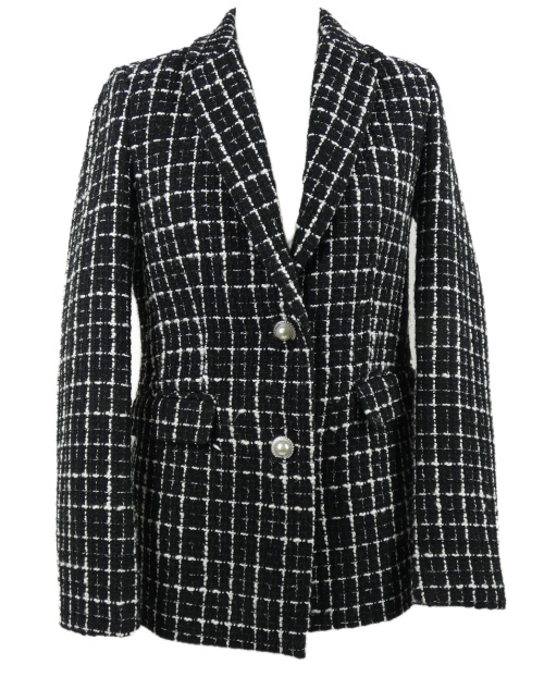 Dámský černo-bílý kostkovaný vlněný kabátek Jean Pascale