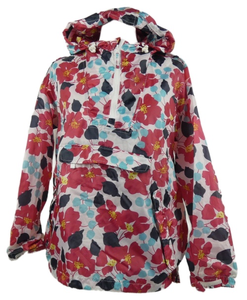 Dámská tmavorůžovo-modrá květovaná šusťáková bunda s kapucí