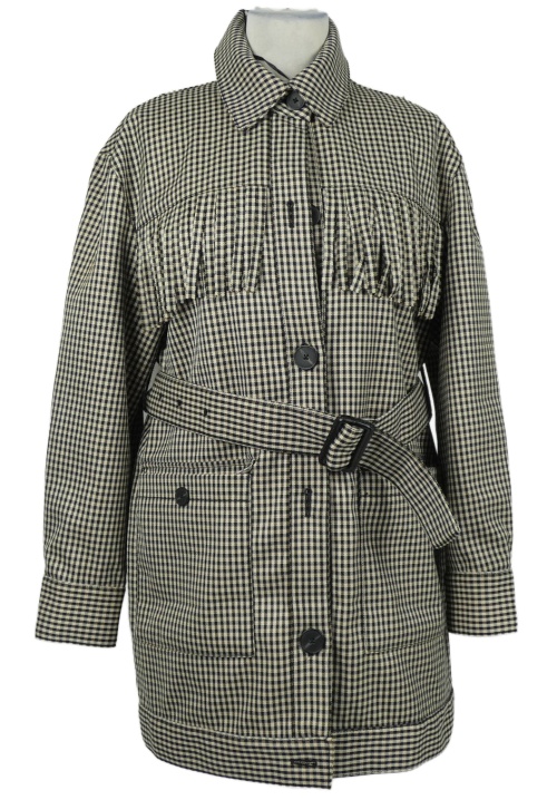 Dámský černo-béžový vzorovaný jarní kabát s páskem MNG
