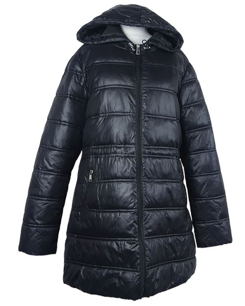 Dámský černý šusťákový zimní kabát s kapucí Janina
