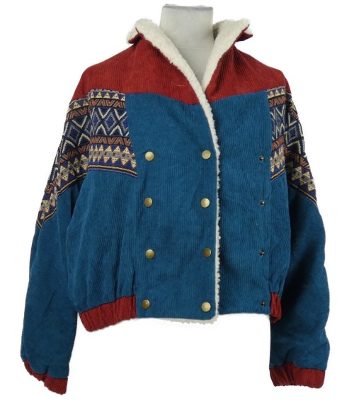 Dámská modro-červená manšestrová vzorovaná crop bunda Zaful