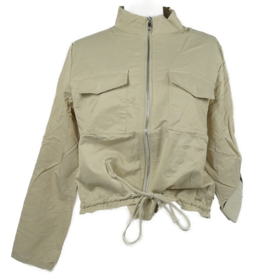 Dámská béžová lehká crop bunda s rolovacími rukávy
