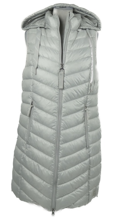 Dámská šedá šusťáková zateplená maxi vesta s kapucí Sure