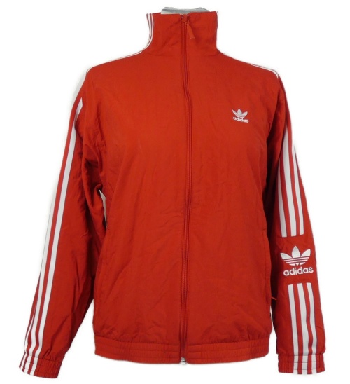 Dámská červená šusťáková sportovní bunda s pruhy Adidas