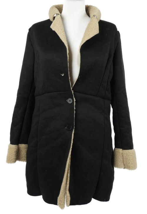 Dámský černý semišový zateplený kabát Shein