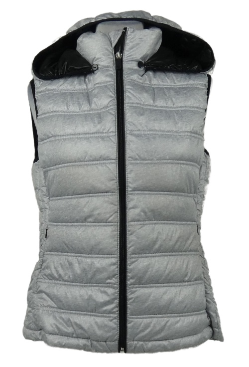 Dámská šedá šusťáková zateplená vesta s odepínací kapucí