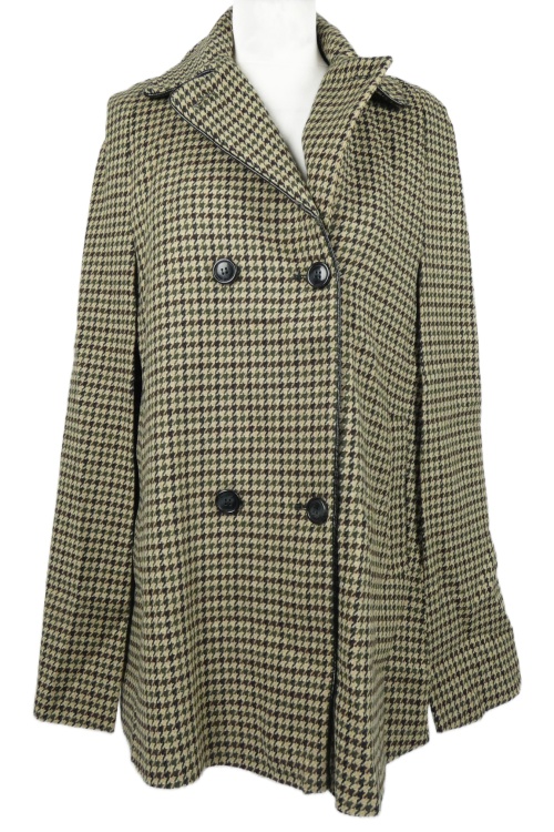 Dámské hnědo-béžové vzorované vlněné kabátové pončo s průstřihy na ruce Topshop