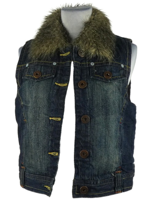 Dámská tmavomodrá riflová zateplená crop vesta s kožíškem Casa Blanca